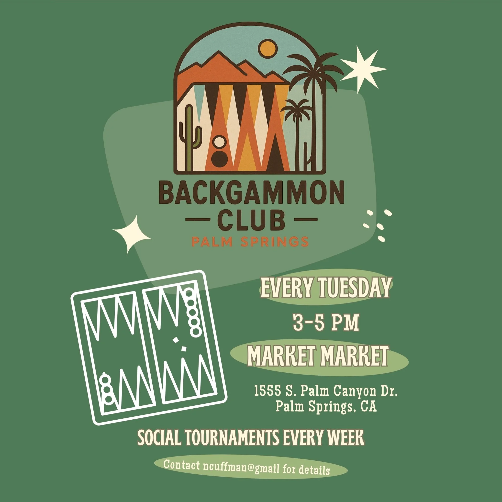 Play Backgammon every Tuesday from 3pm - 5pm!